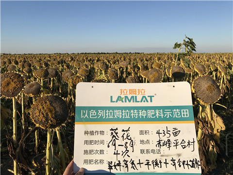 在葵花形成花盤的時候,也是需水需肥最關(guān)鍵期,是營養(yǎng)生長和生殖生長并進的時候,也是作物需肥最均衡的時期,這時需要追施拉姆拉翠姆平衡肥(20-20-20)。不但可以讓花盤長的大而且是促進植株健壯的最好時期。那么這個時候也要補充我們的葉面營養(yǎng),用拉姆拉翠姆葉面肥加上硼肥或者翠姆礦質(zhì)磷酸二氫鉀葉面噴施。因為很多時候我們是不注重補充葉面肥的,所以會造成后期葵花掉頭、籽粒不飽滿、有銹斑、皮毛不好等現(xiàn)象。這些很大一部分原因是缺失鈣硼鋅這些中微量元素。所以要想葵花長的好,葉片噴施少不了。