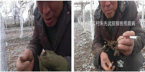 下圖是2019年11月28號雙明村,翠香獼猴桃果樹出現(xiàn)根腐病,使用拉姆拉伯示麥生根劑灌根的現(xiàn)場圖片,過去因缺少管理經(jīng)驗,大化肥施入過多,引起果樹根腐,現(xiàn)在經(jīng)過當(dāng)?shù)丶夹g(shù)老師的指導(dǎo),使用伯示麥生根劑套餐灌根,促進(jìn)根系新生,伯示麥生根劑耐高溫和低溫,在零下10攝氏度一樣能使用,特別添加核心成份聚谷氨酸,保水保肥性好,添加生根因子,生根刺激素,北大西洋馬尾草中提取,生物型,安全性好,不燒根,效果顯著。